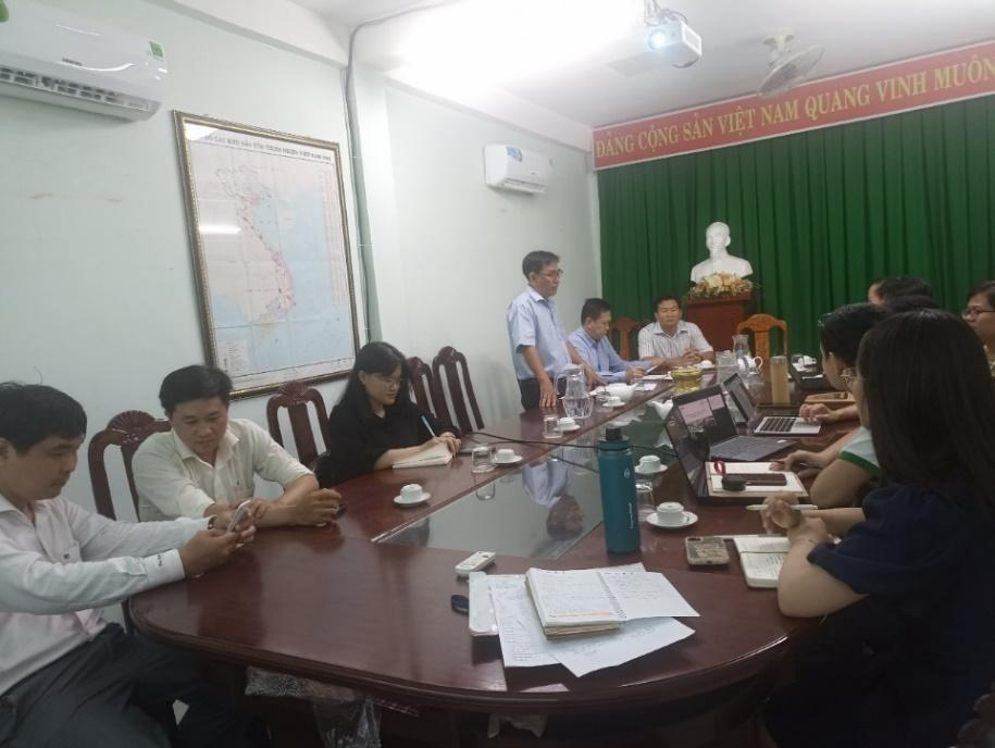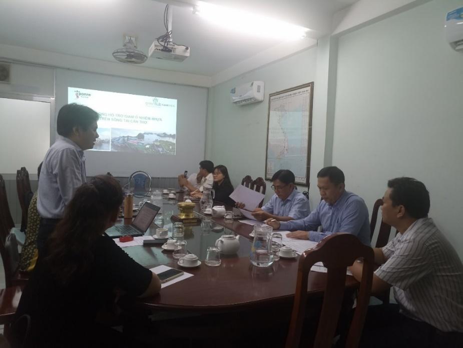 The Institute of Strategy and Policy on Natural Resources and Environment (ISPONRE) organized a meeting with DONRE and relevant stakeholders in Can Tho to discuss the project work plan implemented in Can Tho. The meeting gathered the participation from DONRE/Environmental Protection Agency; Ninh Kieu District People Committees/Natural Resources and Environment Office, People Committees of Cai Khe Ward/ Natural Resources and Environment Office; and Department of Education and Training.
